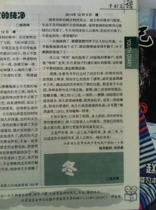 项玉婷《冬》发表于《青少年日记》2015年5期